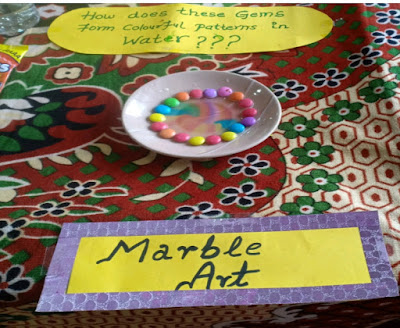 4.Then I poured warm water slowly in the plate containing the chocolate gems. I asked students to observe carefully.